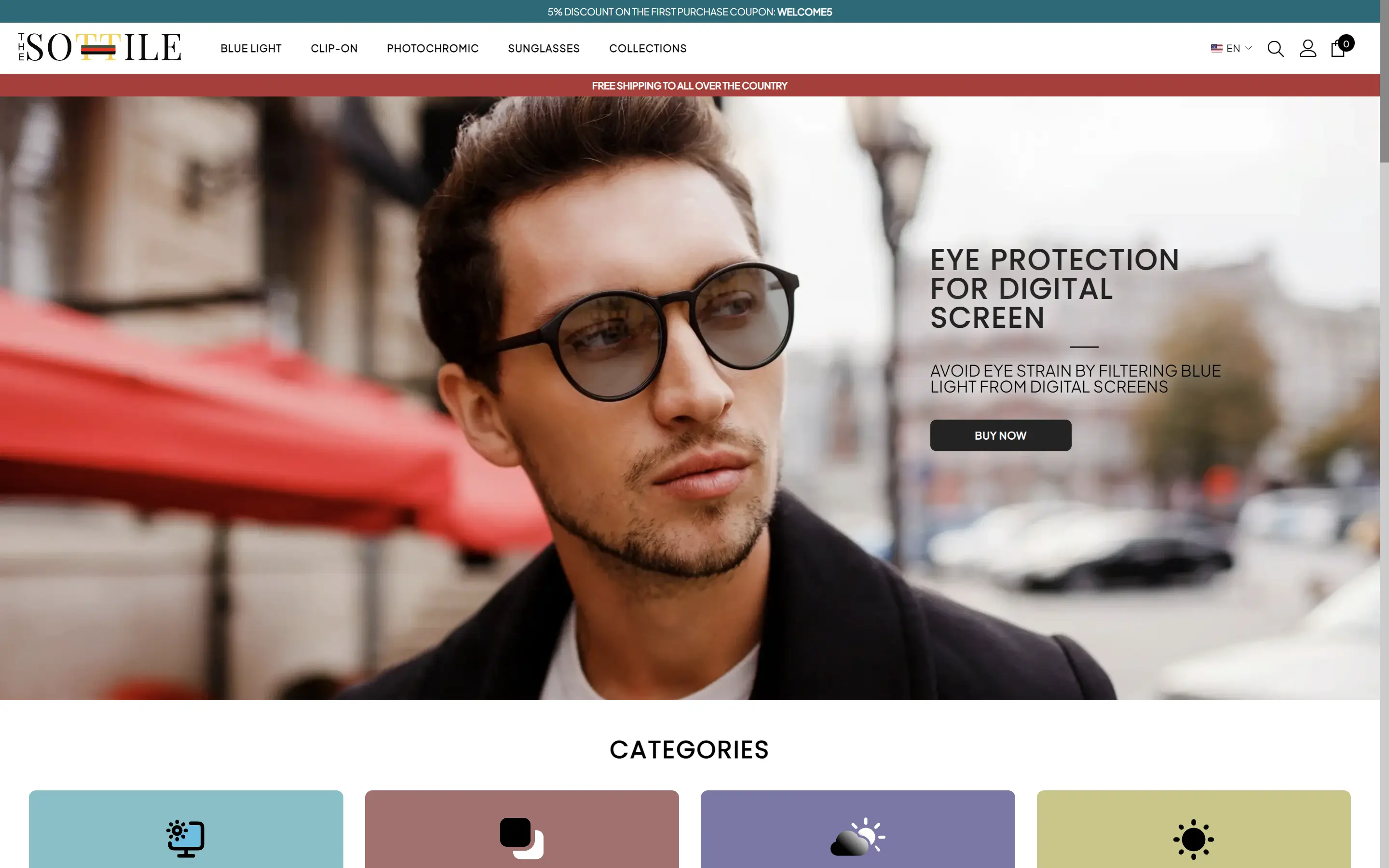 The Sottile specializes in blue light, clip-on, and photochromic eyewear for people who work extensively on computers. This e-commerce project integrates product import from China, platform integration, and branding strategies to support market expansion.